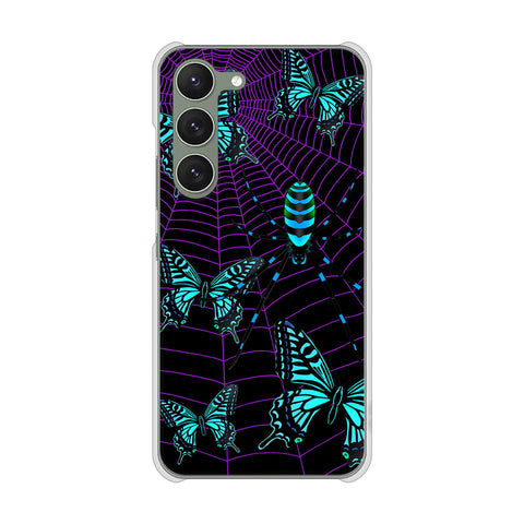 Galaxy S23 SM-S911C 楽天モバイル 高画質仕上げ 背面印刷 ハードケース蜘蛛の巣に舞う蝶