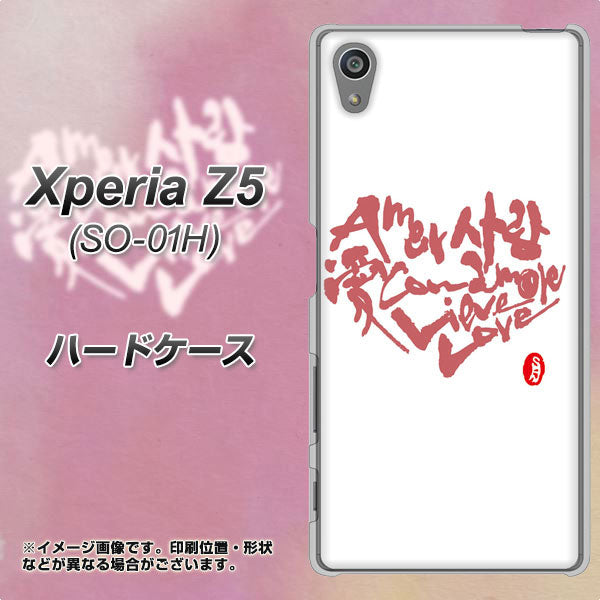 docomo エクスペリアZ5 SO-01H 高画質仕上げ 背面印刷 ハードケース【OE801 世界の言葉で「愛(ホワイト)」のデザイン筆文字(書道家作品)】