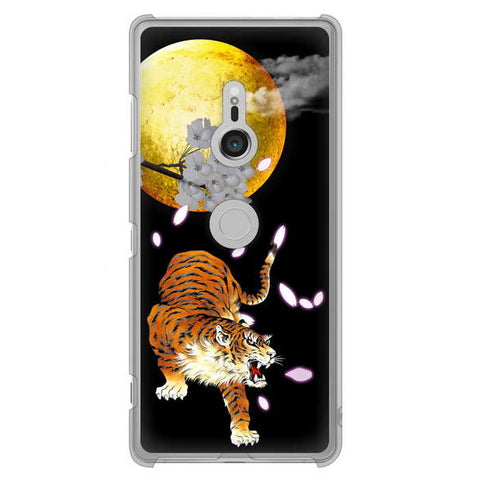 Xperia XZ3 SO-01L docomo 高画質仕上げ 背面印刷 ハードケース 月とタイガー