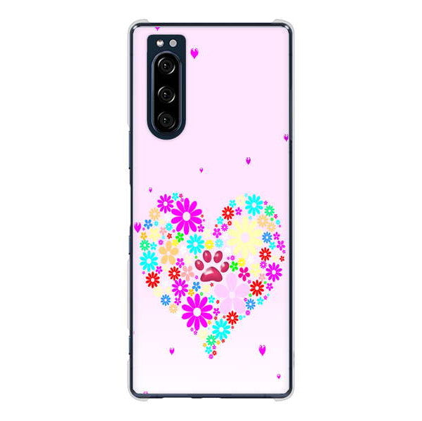 Xperia 5 SO-01M docomo 高画質仕上げ 背面印刷 ハードケース ハートと肉球