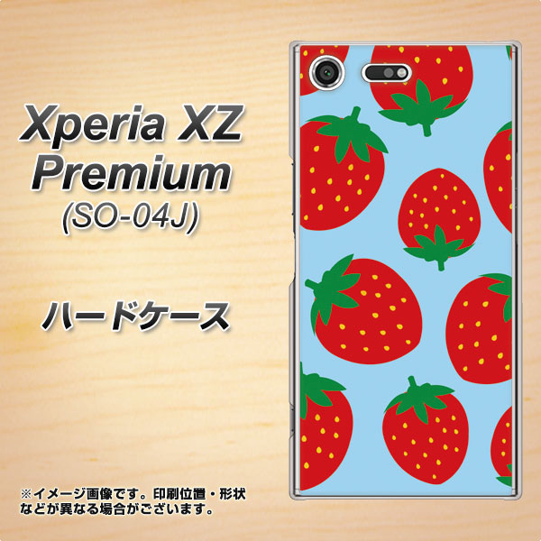 docomo エクスペリア XZ プレミアム SO-04J 高画質仕上げ 背面印刷 ハードケース【SC821 大きいイチゴ模様レッドとブルー】