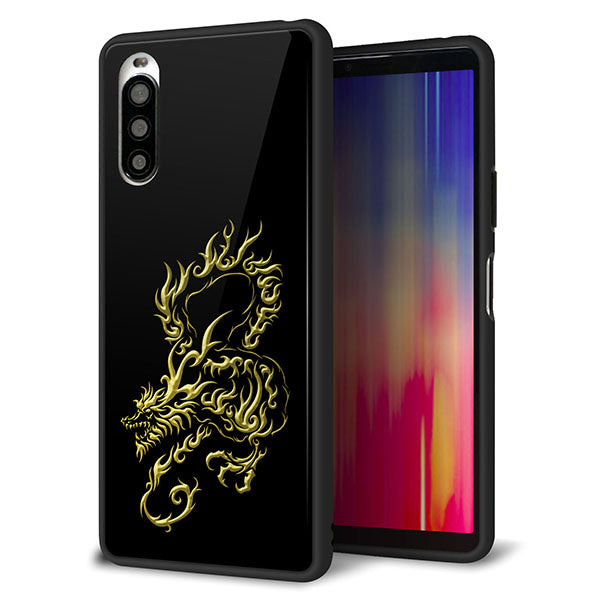 docomo エクスペリア10 II SO-41A 強化ガラス&TPUスマホケース ガラプリ【VA831 闇と龍】