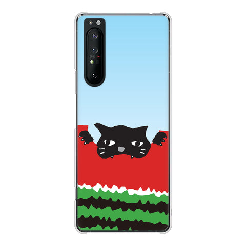 Xperia 1 II SO-51A docomo 高画質仕上げ 背面印刷 ハードケース すいかをかじるネコ