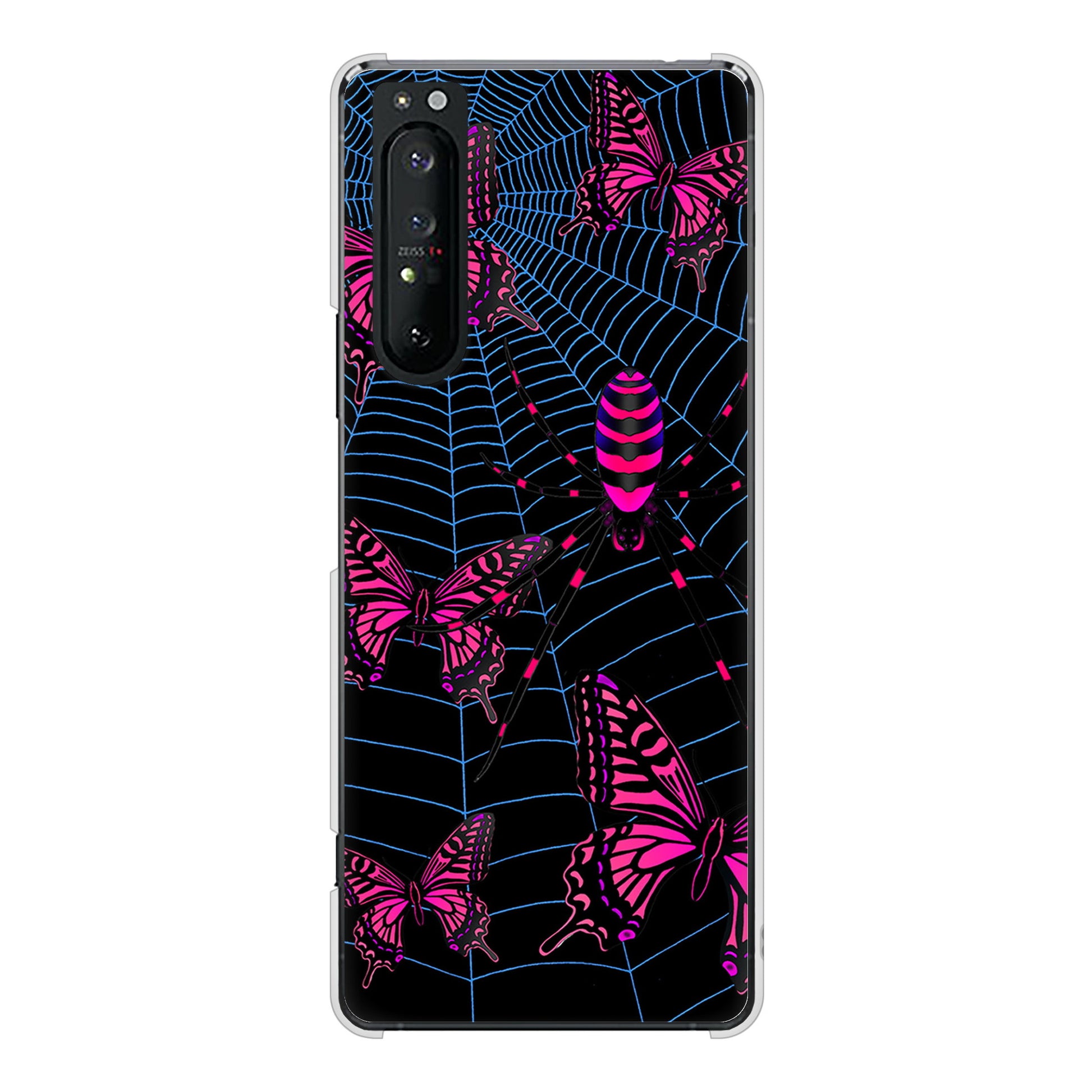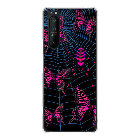 Xperia 1 II SO-51A docomo 高画質仕上げ 背面印刷 ハードケース むかいあぐる 蜘蛛の巣に舞う蝶