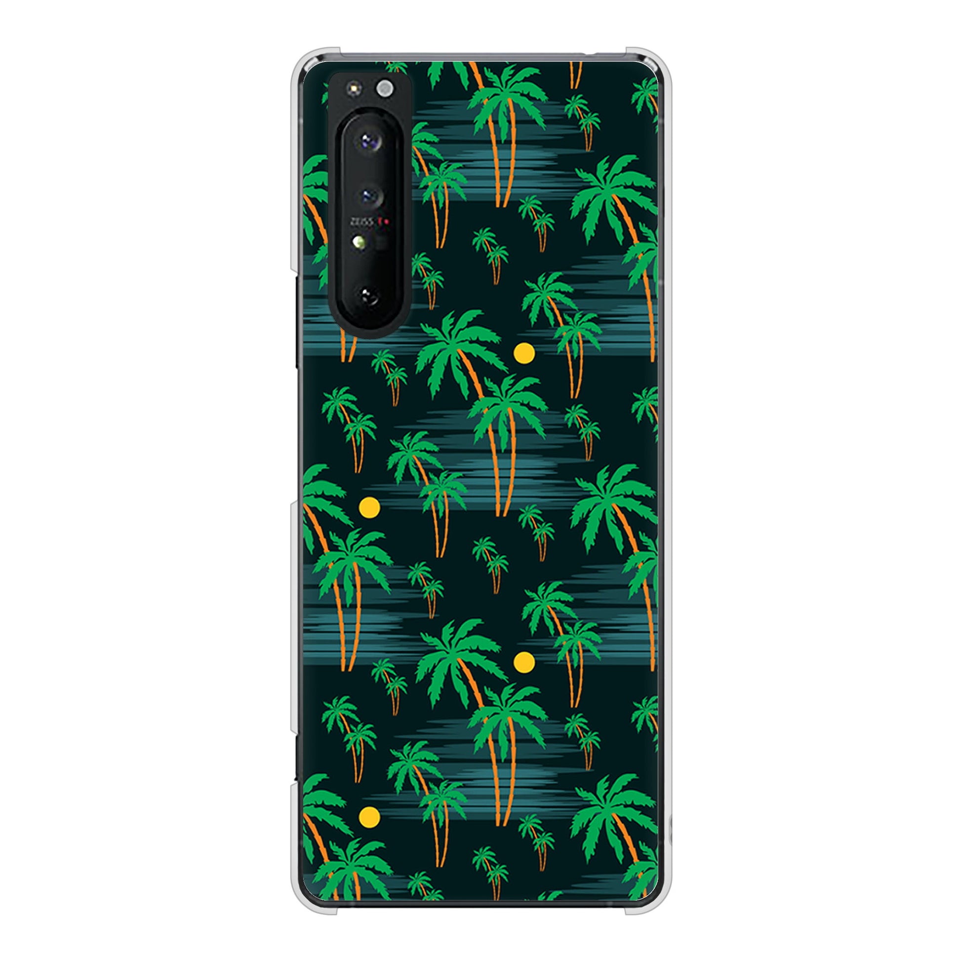 Xperia 1 II SO-51A docomo 高画質仕上げ 背面印刷 ハードケース 【1315 月夜とヤシ】