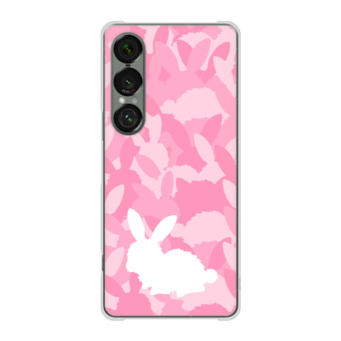 Xperia 1 VII SO-51F docomo 高画質仕上げ 背面印刷 ハードケースむかいあぐる うさぎ迷彩風
