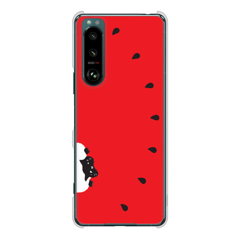 Xperia 5 III SO-53B docomo 高画質仕上げ 背面印刷 ハードケース すいかをかじるネコ