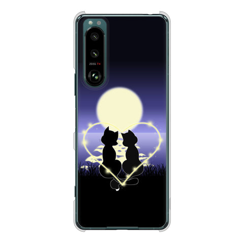 Xperia 5 III SO-53B docomo 高画質仕上げ 背面印刷 ハードケース 夜とネコ