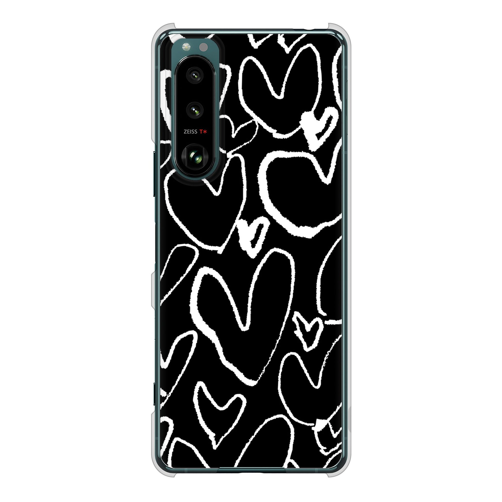 Xperia 5 III SO-53B docomo 高画質仕上げ 背面印刷 ハードケース 【1124 ハート BK&WH】