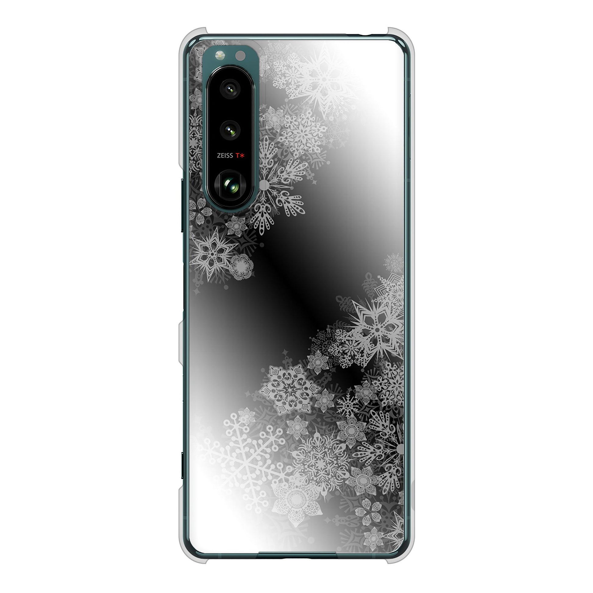 Xperia 5 III SO-53B docomo 高画質仕上げ 背面印刷 ハードケース 【YJ340 モノトーン 雪の結晶 】