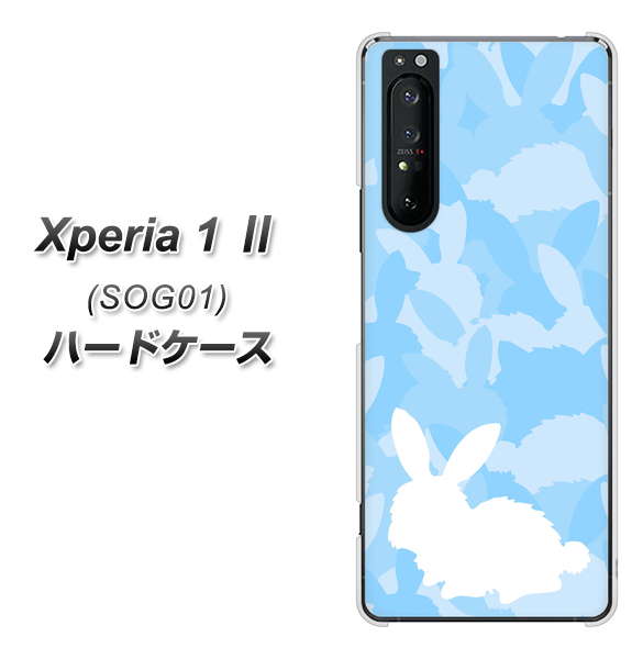 au エクスペリア1 II SOG01 高画質仕上げ 背面印刷 ハードケース【AG805 うさぎ迷彩風(水色)】