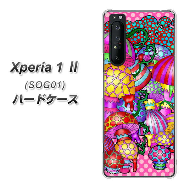 au エクスペリア1 II SOG01 高画質仕上げ 背面印刷 ハードケース【AG806 きのこ(ピンク)】