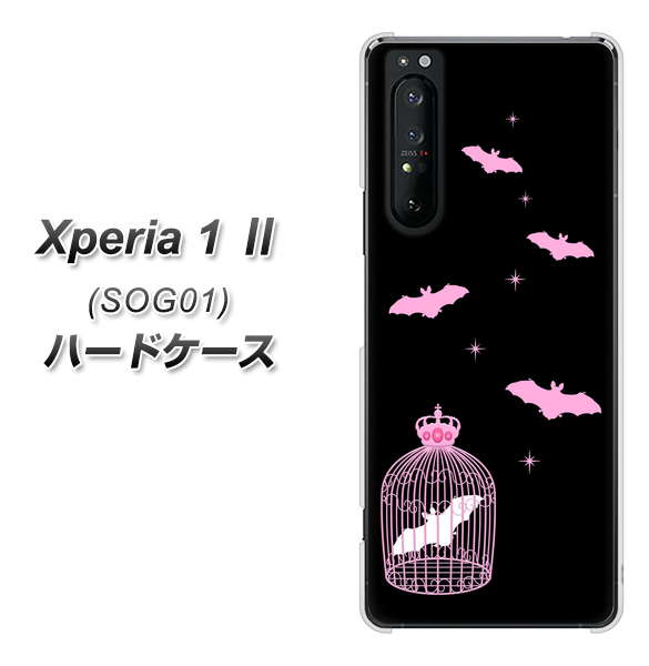 au エクスペリア1 II SOG01 高画質仕上げ 背面印刷 ハードケース【AG809 こうもりの王冠鳥かご(黒×ピンク)】