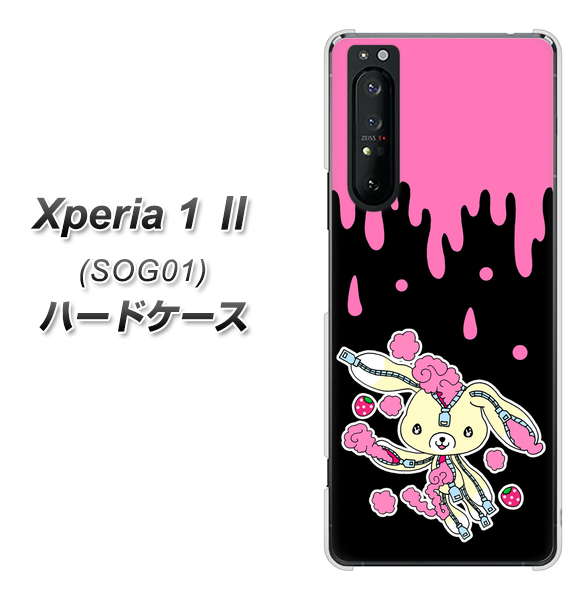 au エクスペリア1 II SOG01 高画質仕上げ 背面印刷 ハードケース【AG814 ジッパーうさぎのジッピョン(黒×ピンク)】