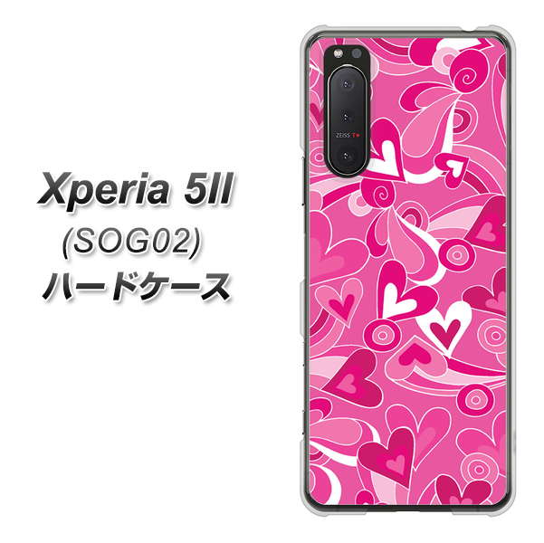 au エクスペリア5II SOG02 高画質仕上げ 背面印刷 ハードケース【383 ピンクのハート】