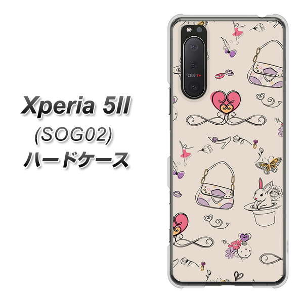 au エクスペリア5II SOG02 高画質仕上げ 背面印刷 ハードケース【705 うさぎとバッグ】
