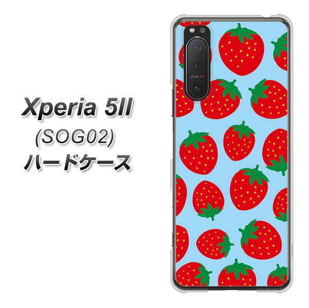 au エクスペリア5II SOG02 高画質仕上げ 背面印刷 ハードケース【SC814 小さいイチゴ模様 レッドとブルー】