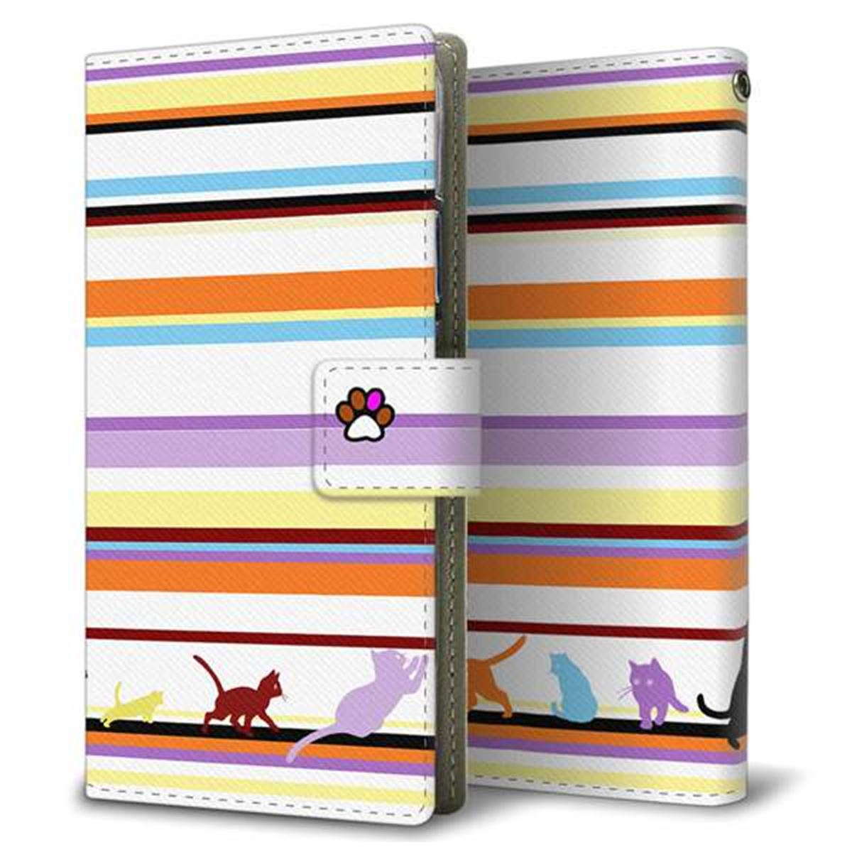au エクスペリア10 III SOG04 画質仕上げ プリント手帳型ケース(薄型スリム)【YA887 ストライプネコ01】