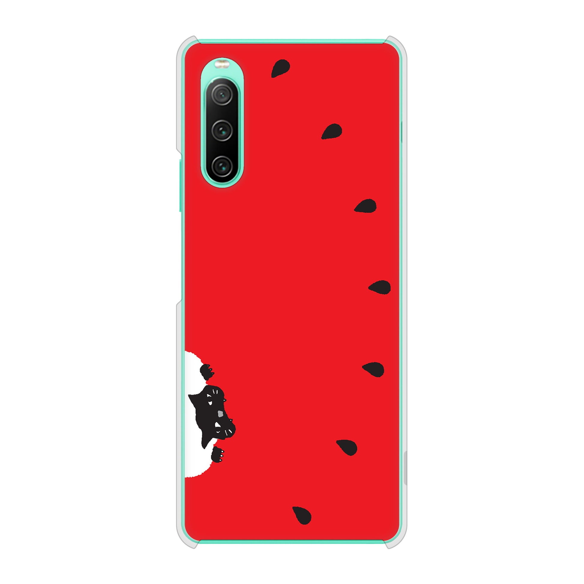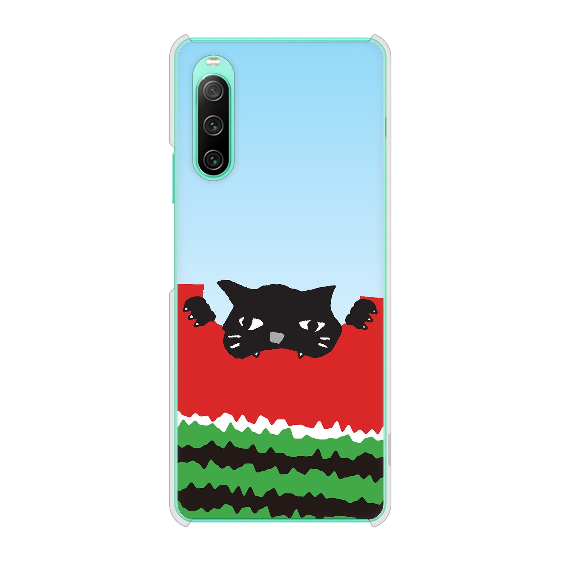 Xperia 10 IV SOG07 au 高画質仕上げ 背面印刷 ハードケース すいかをかじるネコ
