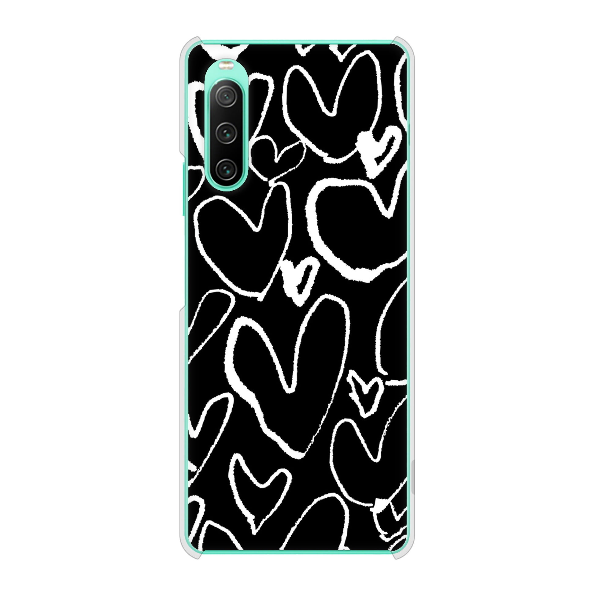 Xperia 10 IV SOG07 au 高画質仕上げ 背面印刷 ハードケース 【1124 ハート BK&WH】