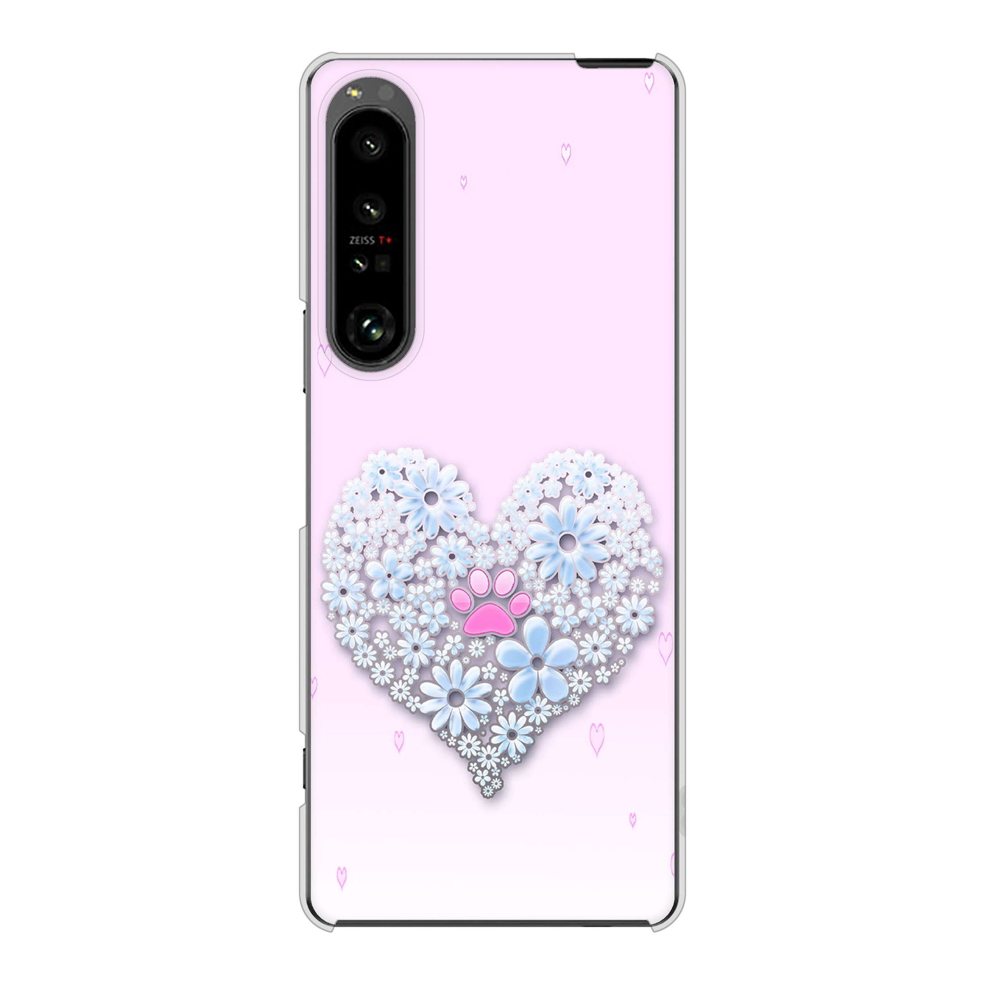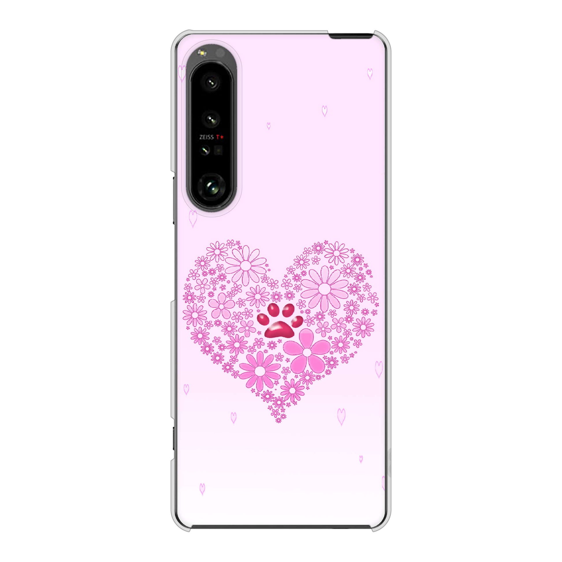 Xperia 1 V SOG10 au 高画質仕上げ 背面印刷 ハードケースハートと肉球
