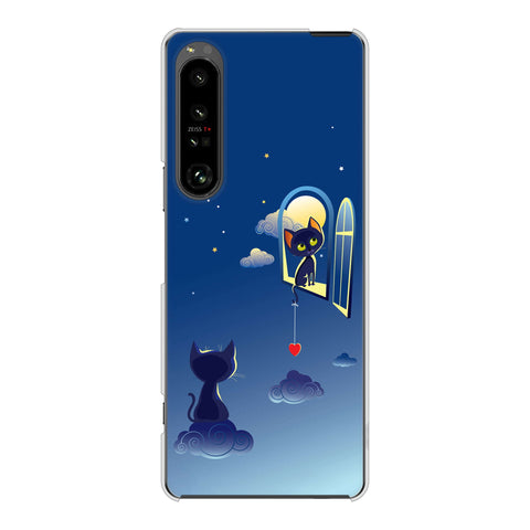 Xperia 1 V SOG10 au 高画質仕上げ 背面印刷 ハードケース夜とネコ