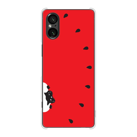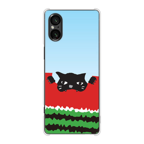 Xperia 5 V SOG12 au 高画質仕上げ 背面印刷 ハードケースすいかをかじるネコ