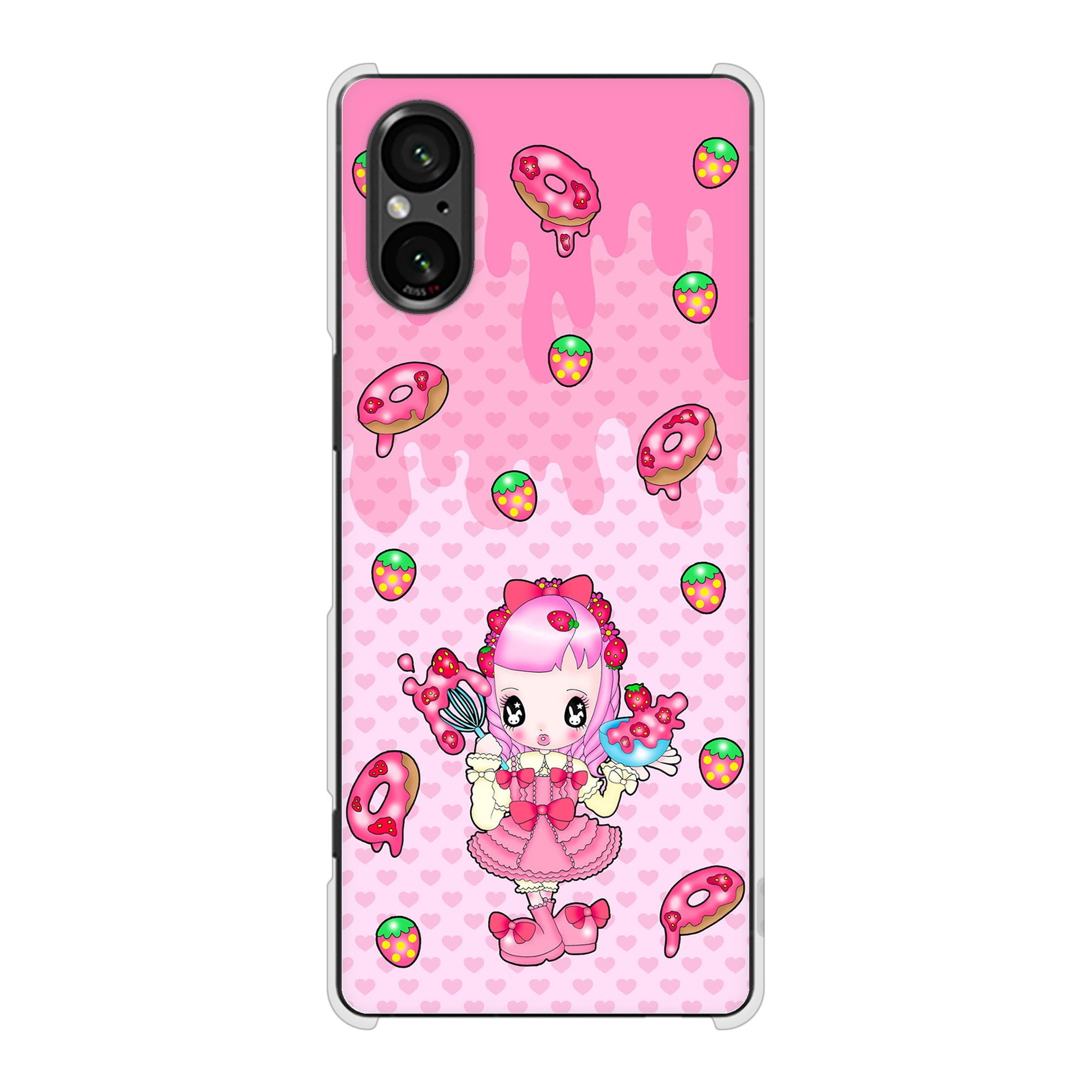 Xperia 5 V SOG12 au 高画質仕上げ 背面印刷 ハードケースむかいあぐる ストロベリードーナツ