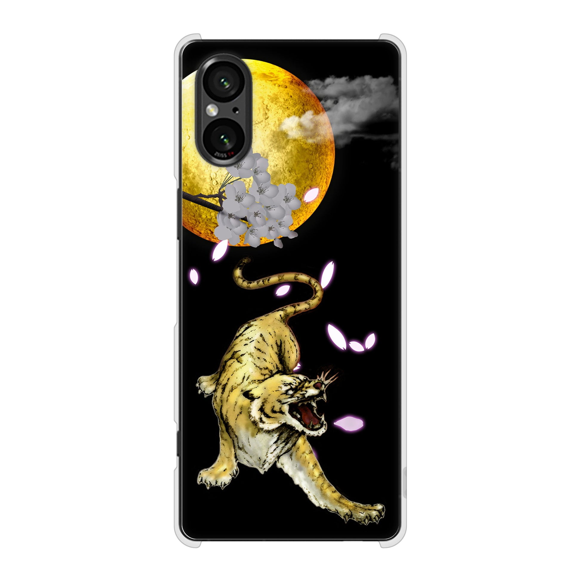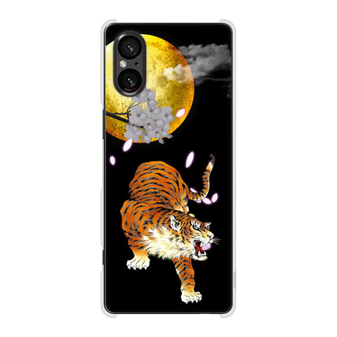 Xperia 5 V SOG12 au 高画質仕上げ 背面印刷 ハードケース月とタイガー