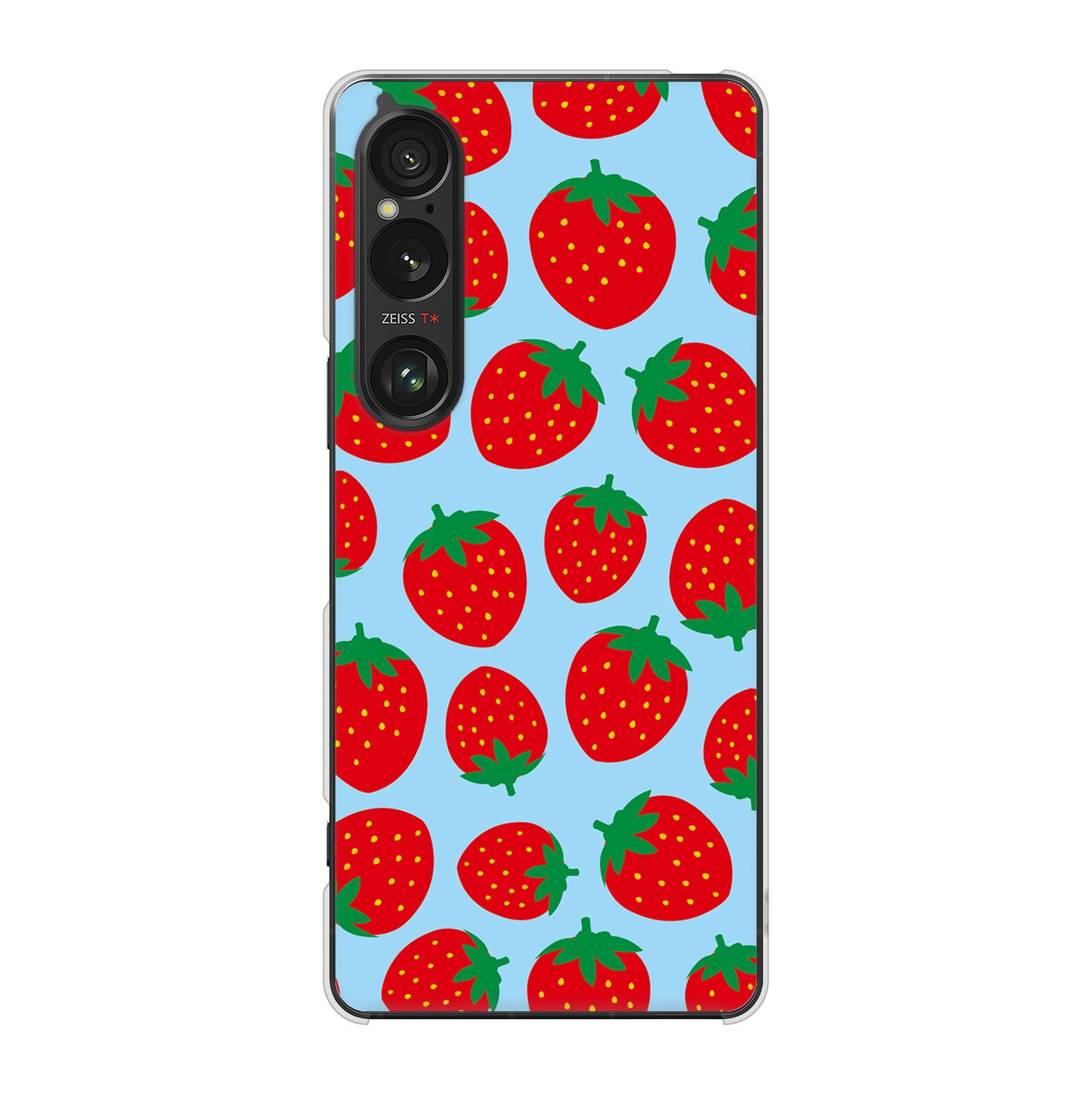 Xperia 1 VI SOG13 au 高画質仕上げ 背面印刷 ハードケース小さいイチゴ模様