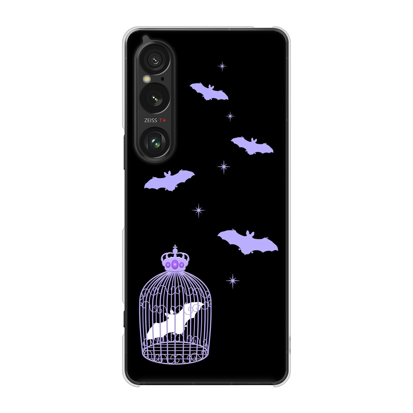 Xperia 1 VI SOG13 au 高画質仕上げ 背面印刷 ハードケースむかいあぐる こうもりの王冠鳥かご