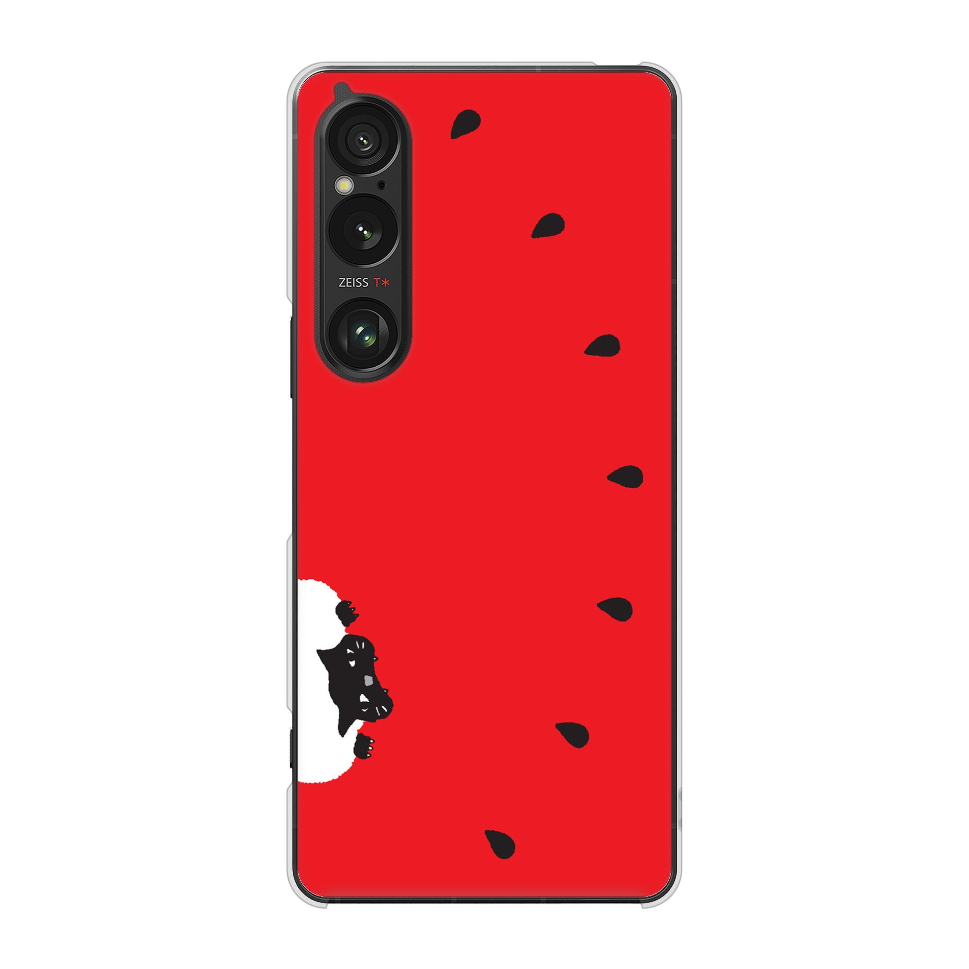Xperia 1 VI SOG13 au 高画質仕上げ 背面印刷 ハードケースすいかをかじるネコ