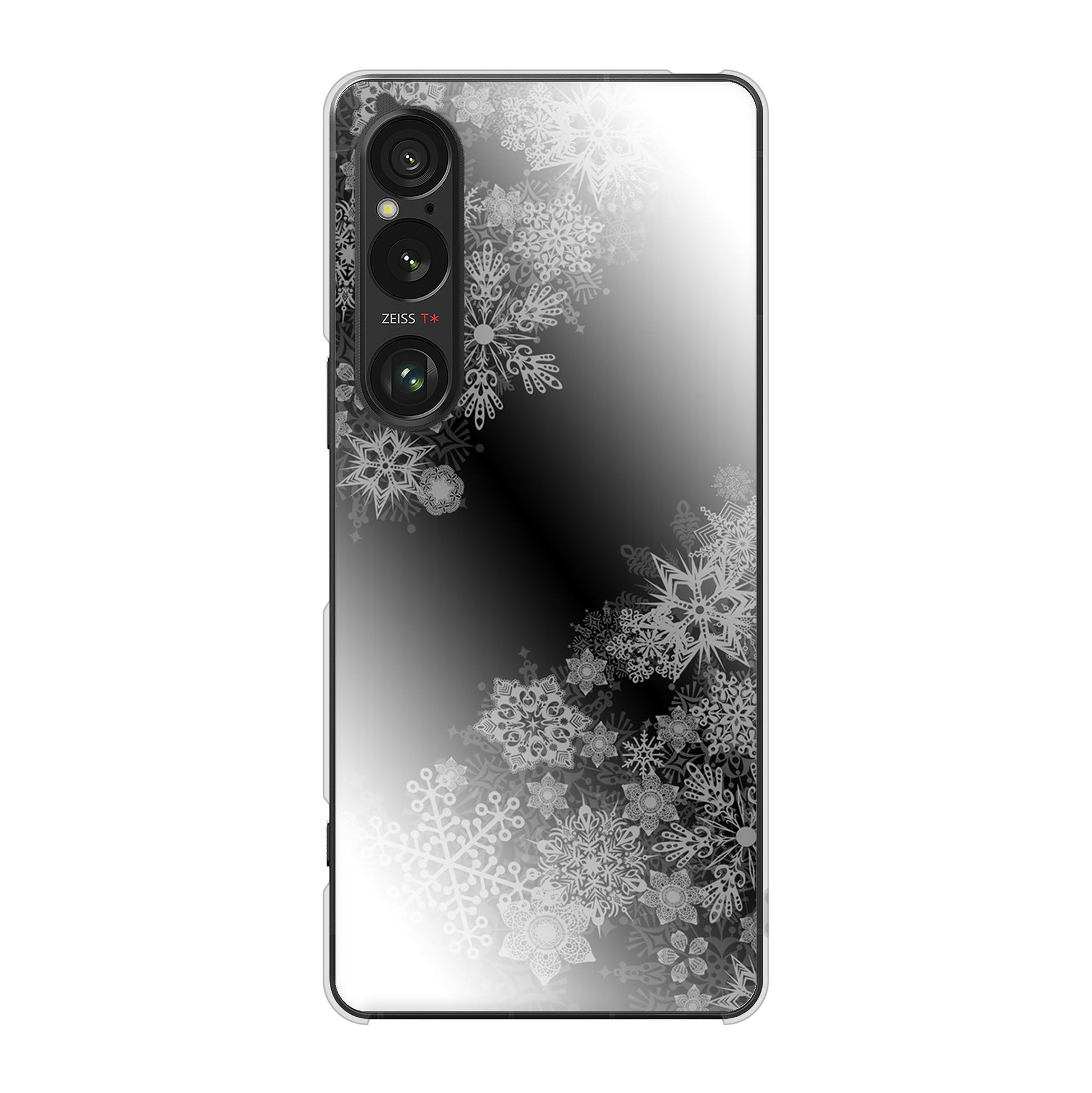 Xperia 1 VI SOG13 au 高画質仕上げ 背面印刷 ハードケース 【YJ340 モノトーン 雪の結晶 】