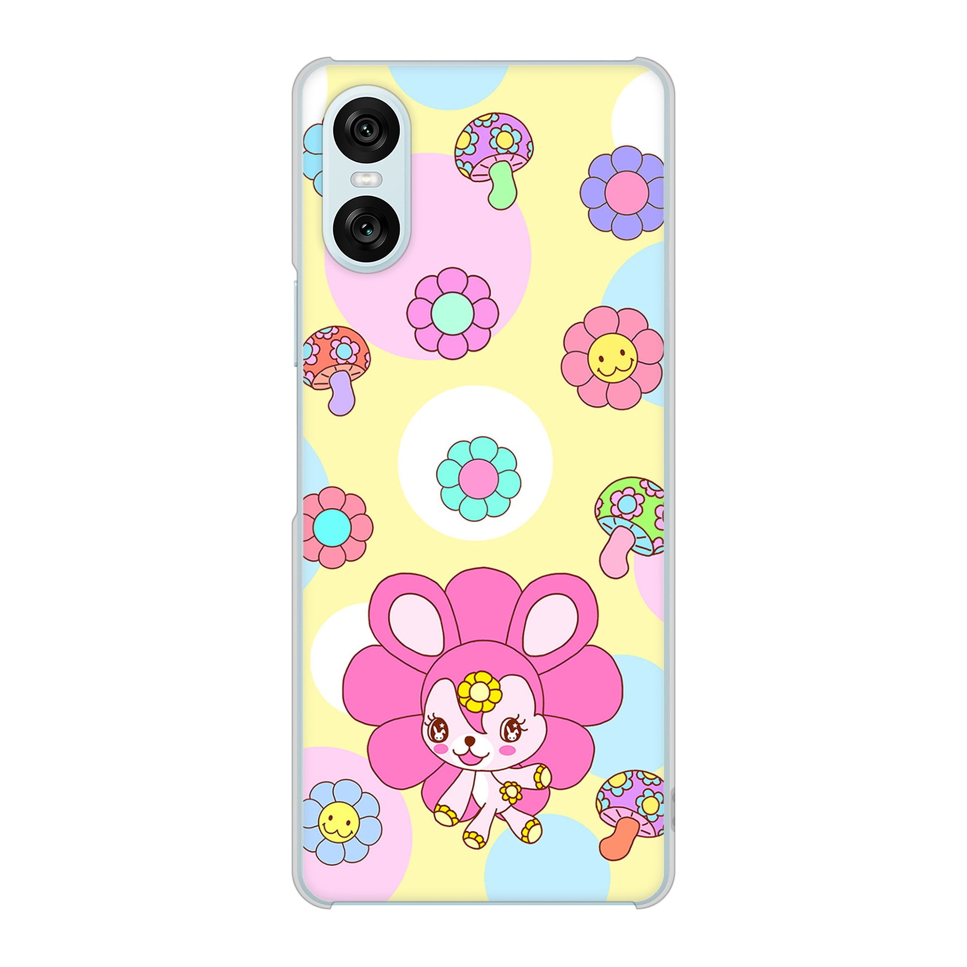 Xperia 10 VI SOG14 au 高画質仕上げ 背面印刷 ハードケースむかいあぐる フラワーうさぎのフラッピョン