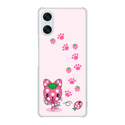 Xperia 10 VI SOG14 au 高画質仕上げ 背面印刷 ハードケースむかいあぐる イチゴ猫のにゃんベリー