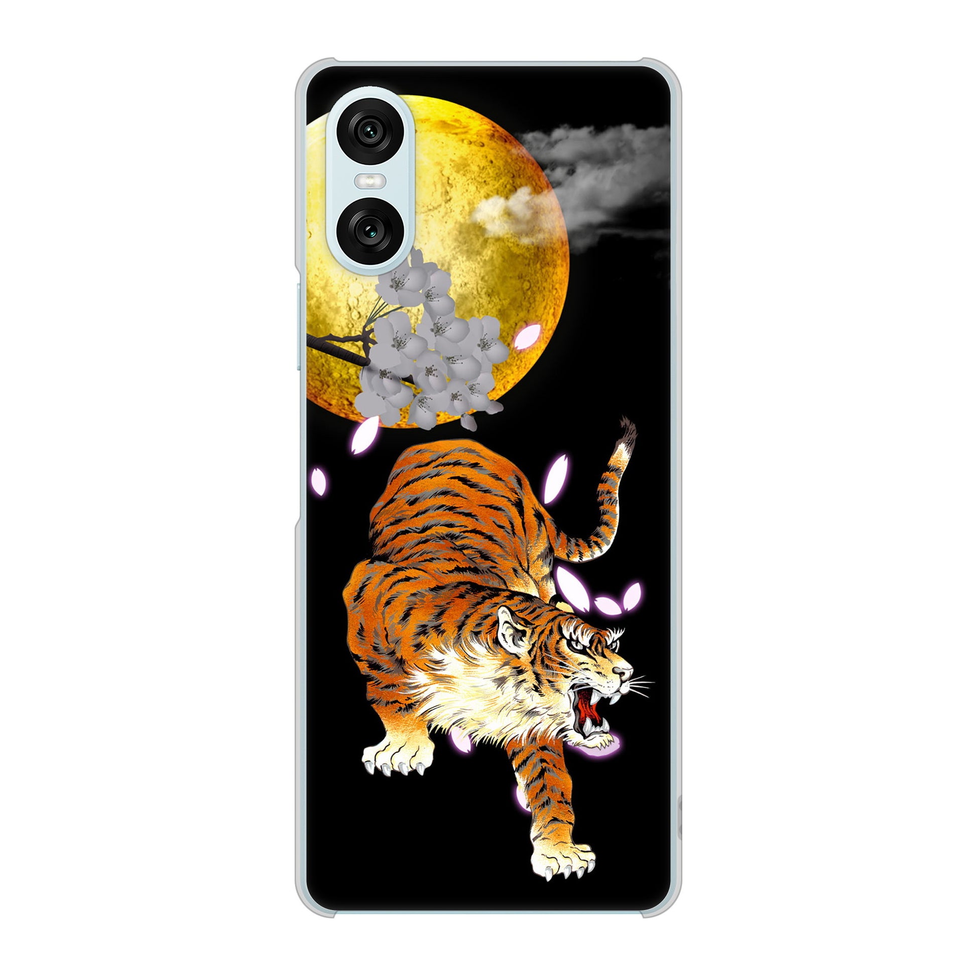 Xperia 10 VI SOG14 au 高画質仕上げ 背面印刷 ハードケース月とタイガー