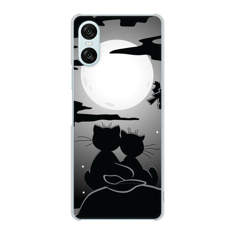 Xperia 10 VI SOG14 au 高画質仕上げ 背面印刷 ハードケース夜とネコ