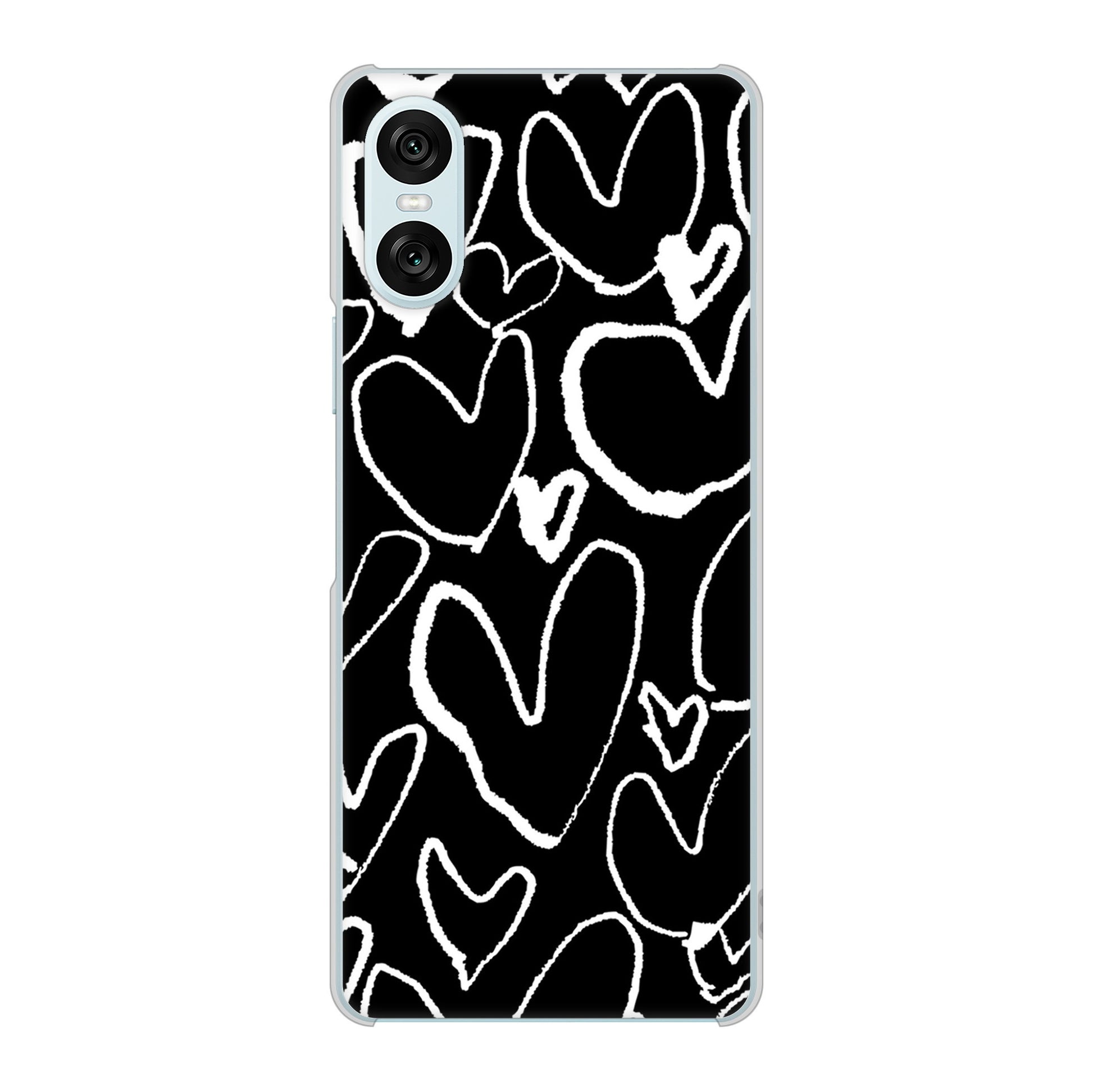 Xperia 10 VI SOG14 au 高画質仕上げ 背面印刷 ハードケース 【1124 ハート BK&WH】