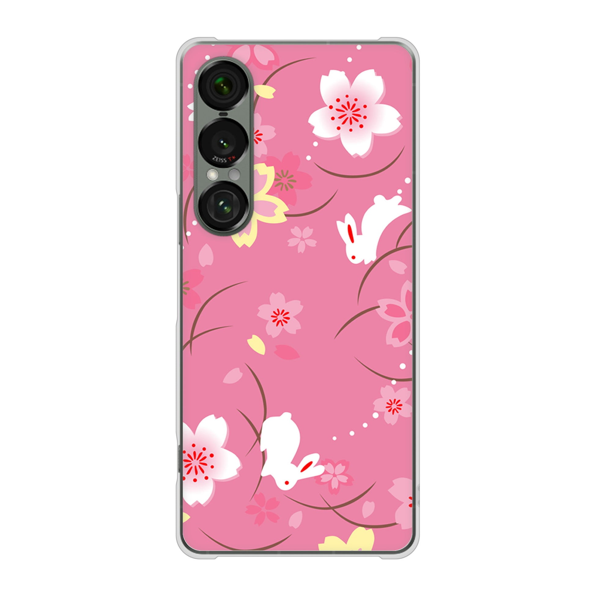 Xperia 1 VII SOG15 au 高画質仕上げ 背面印刷 ハードケース 【149 桜と白うさぎ】
