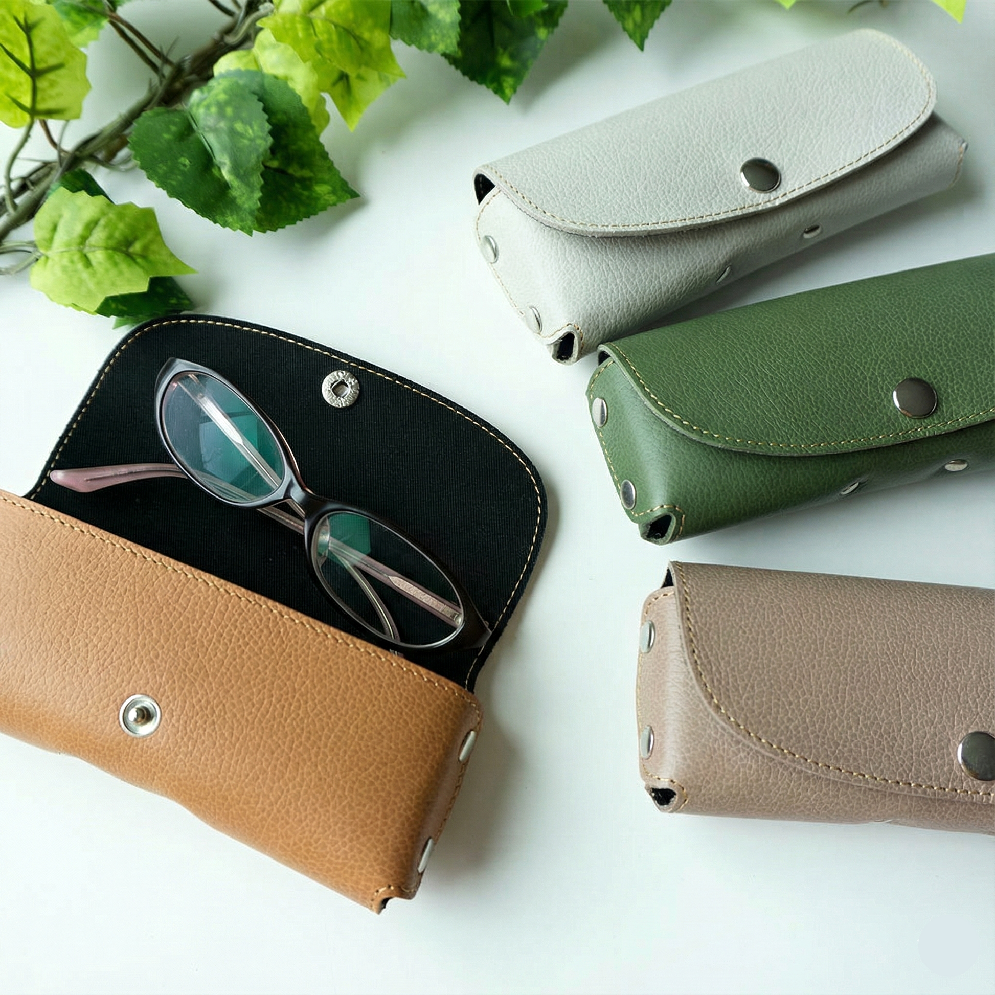 姫路レザーを使ったメガネケースを作りました。