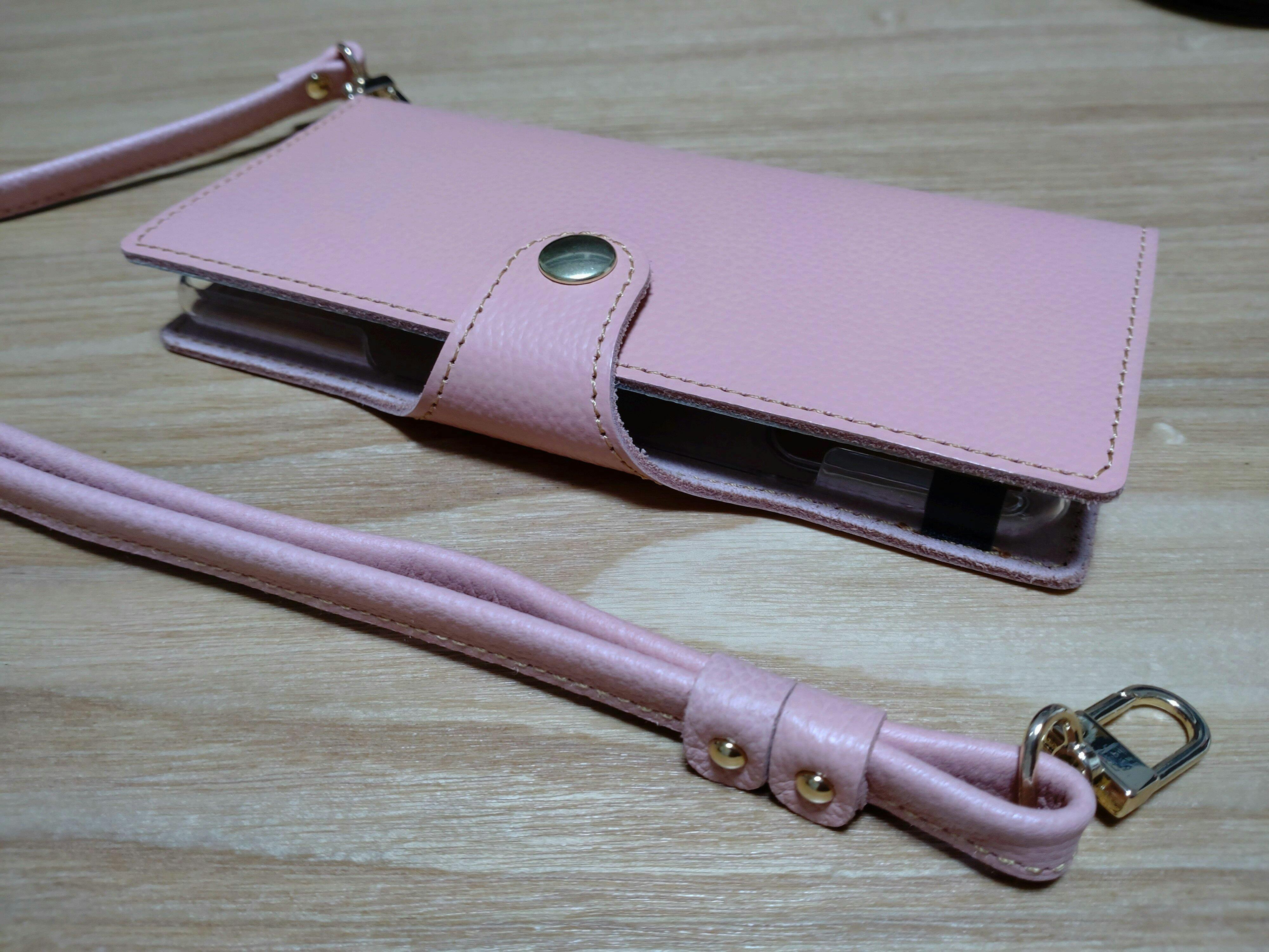 シュリンクレザー 本革 スマホ用ショルダーストラップ ゴールド金具 約75~134cm