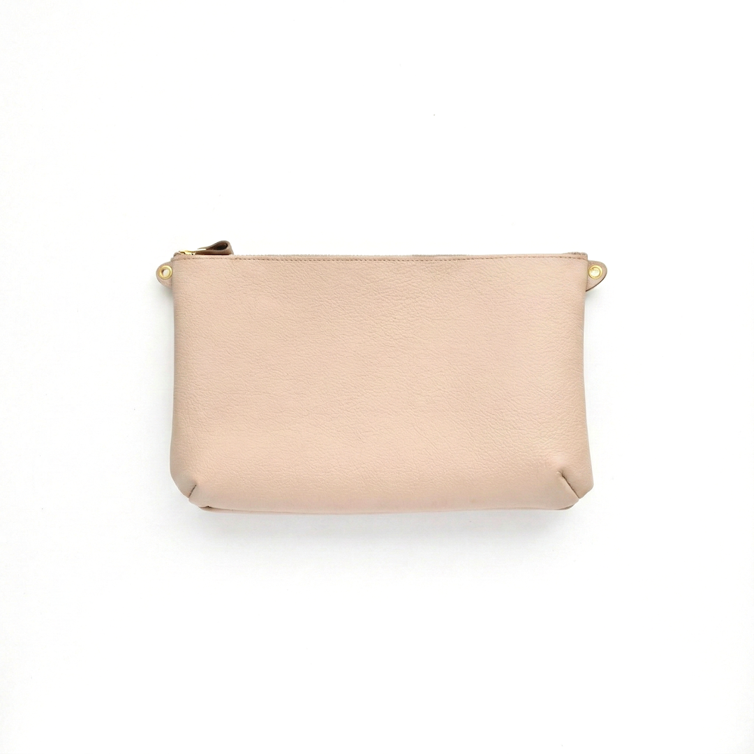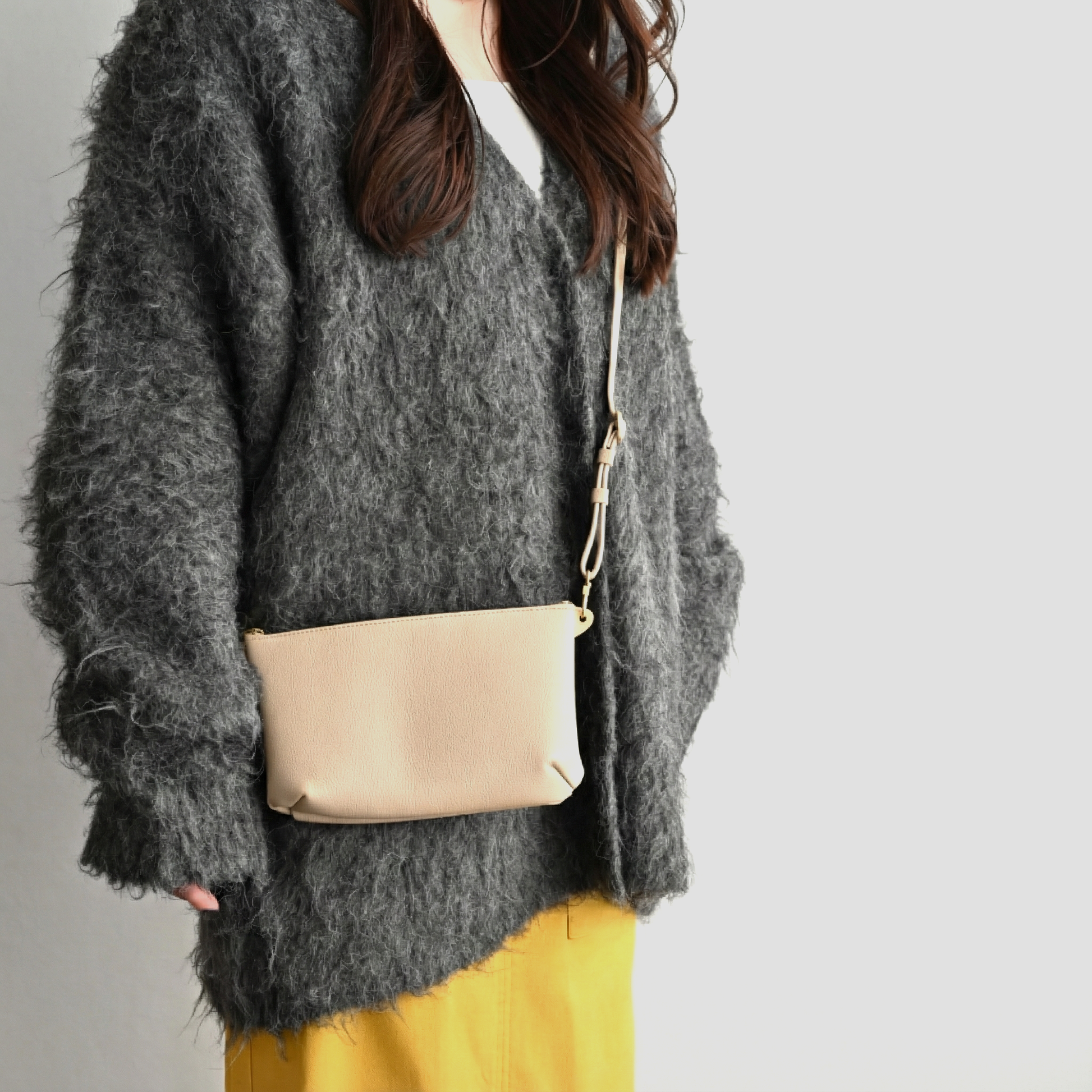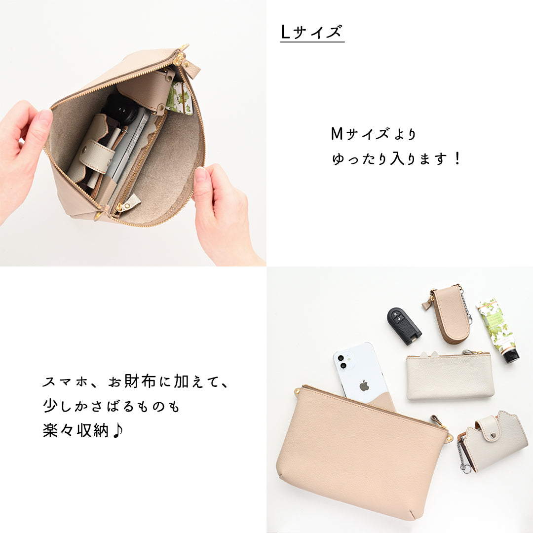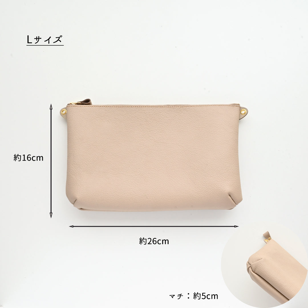 姫路レザー シュリンクレザー 横型マチありファスナーポシェット
