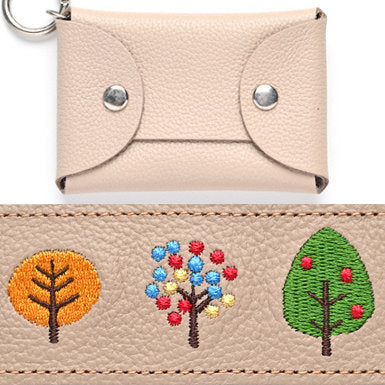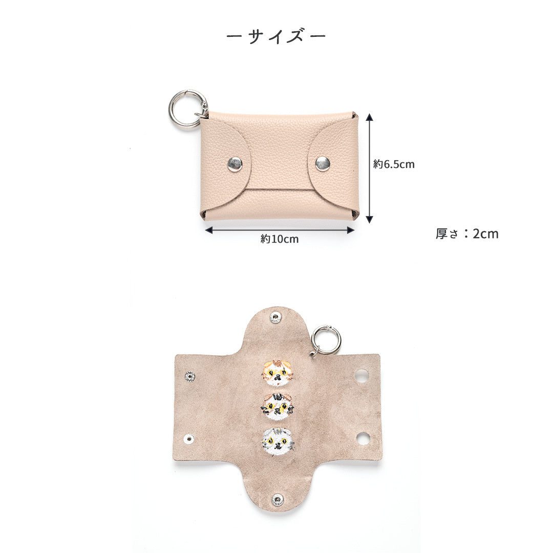 シマエナガとネコ 三つ折り キーケース 【 シュリンクレザー 刺繍 】 姫路レザー 本革