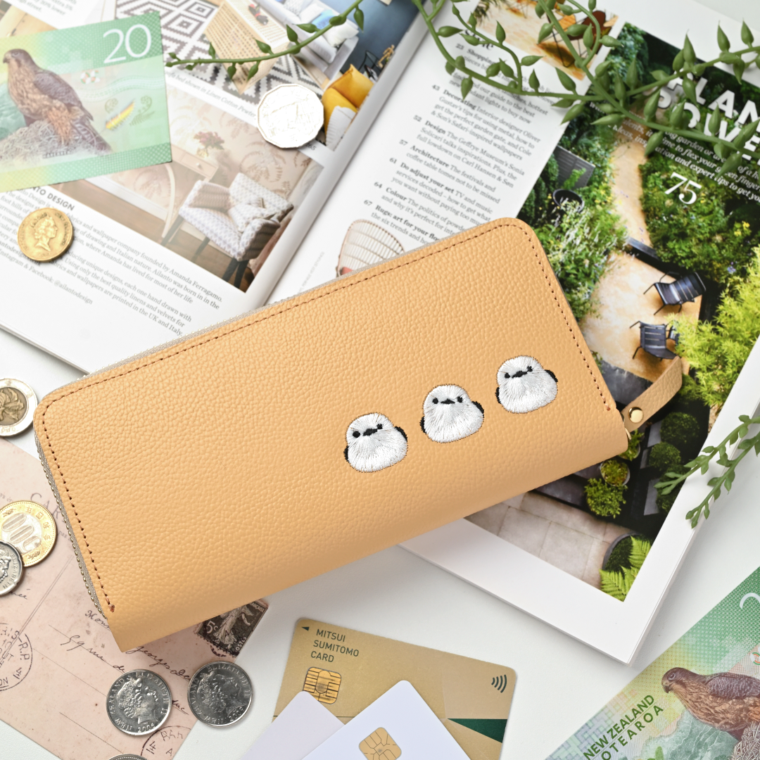 シマエナガとかわいい時間 マチあり L字ファスナー 小さいミニ財布 姫路レザー ミニウォレット