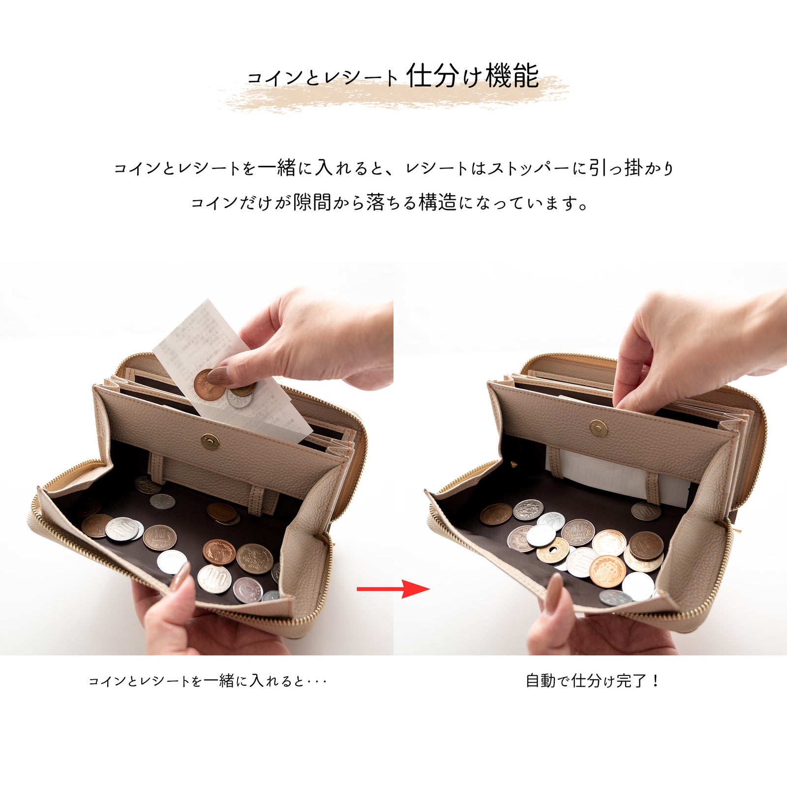 カードやお札、小銭を整理しながらたっぷり収納できる実用性が魅力です。