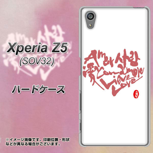 au エクスペリアZ5 SOV32 高画質仕上げ 背面印刷 ハードケース【OE801 世界の言葉で「愛(ホワイト)」のデザイン筆文字(書道家作品)】