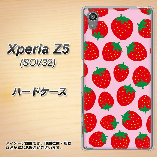 au エクスペリアZ5 SOV32 高画質仕上げ 背面印刷 ハードケース【SC813 小さいイチゴ模様 レッドとピンク】
