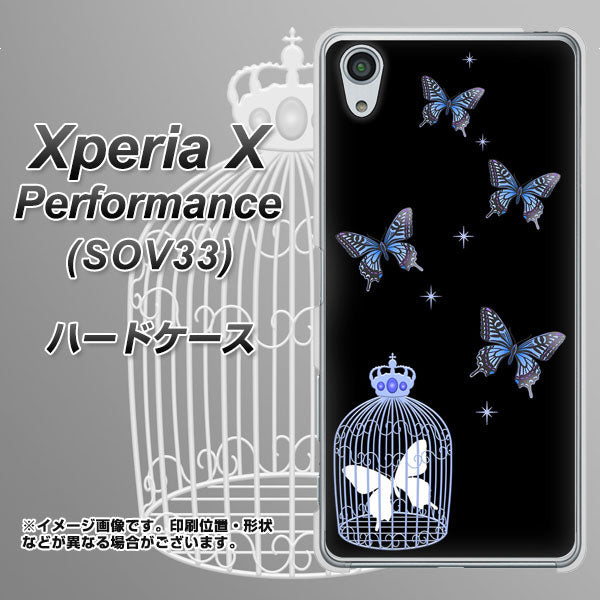 au エクスペリアX パフォーマンス SOV33 高画質仕上げ 背面印刷 ハードケース【AG812 蝶の王冠鳥かご(黒×青)】