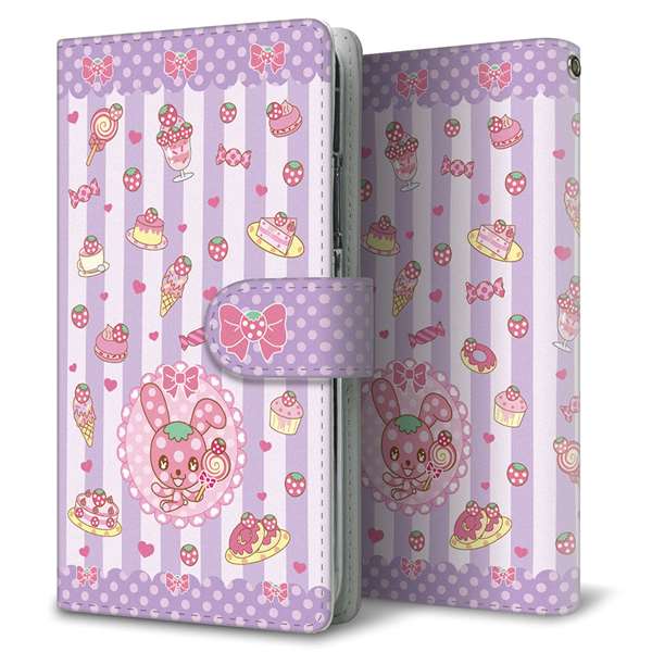 au エクスペリアXZ SOV34 高画質仕上げ プリント手帳型ケース(通常型)【AG867 イチゴウサギ(ラビベリー)の水玉スイーツ パープル】
