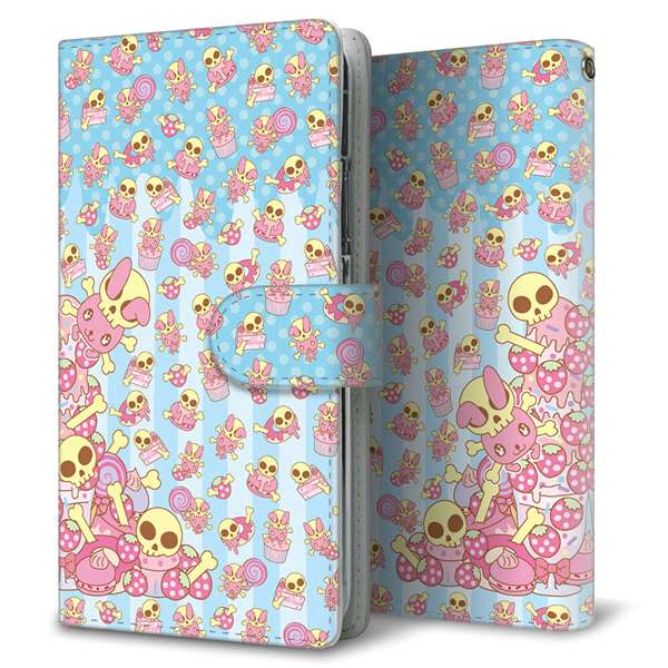 au エクスペリアXZ SOV34 高画質仕上げ プリント手帳型ケース(通常型)【AG872 骸骨うさぎとスイーツ ライトブルー】